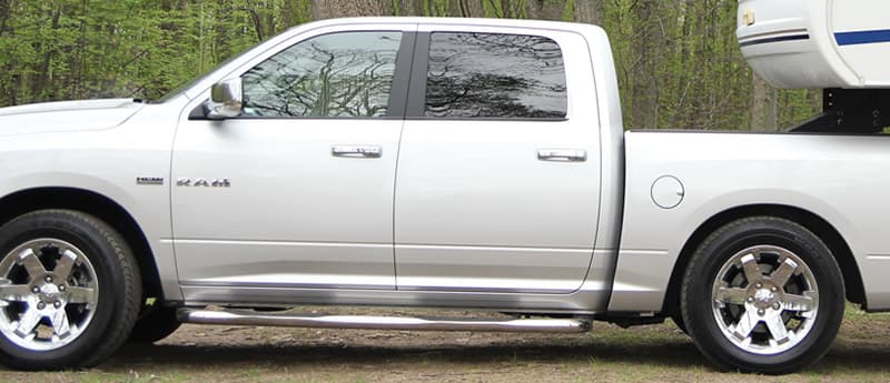 “Bottoming out” refers the frame of the car hitting the axle. This means that your suspension has been compressed all the way down, and that shock isn’t being absorbed when you hit bumps in the road. This is pretty common in stock cars, which are designed to sit low and hug pavement and might get a little banged up on a bumpy strip. For your towing and hauling vehicle, however, this should definitely not be happening.